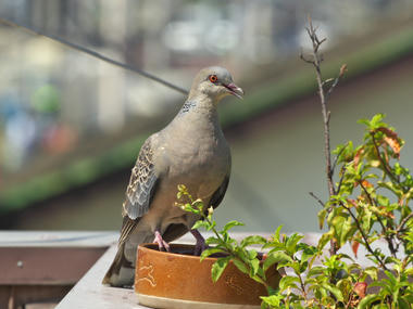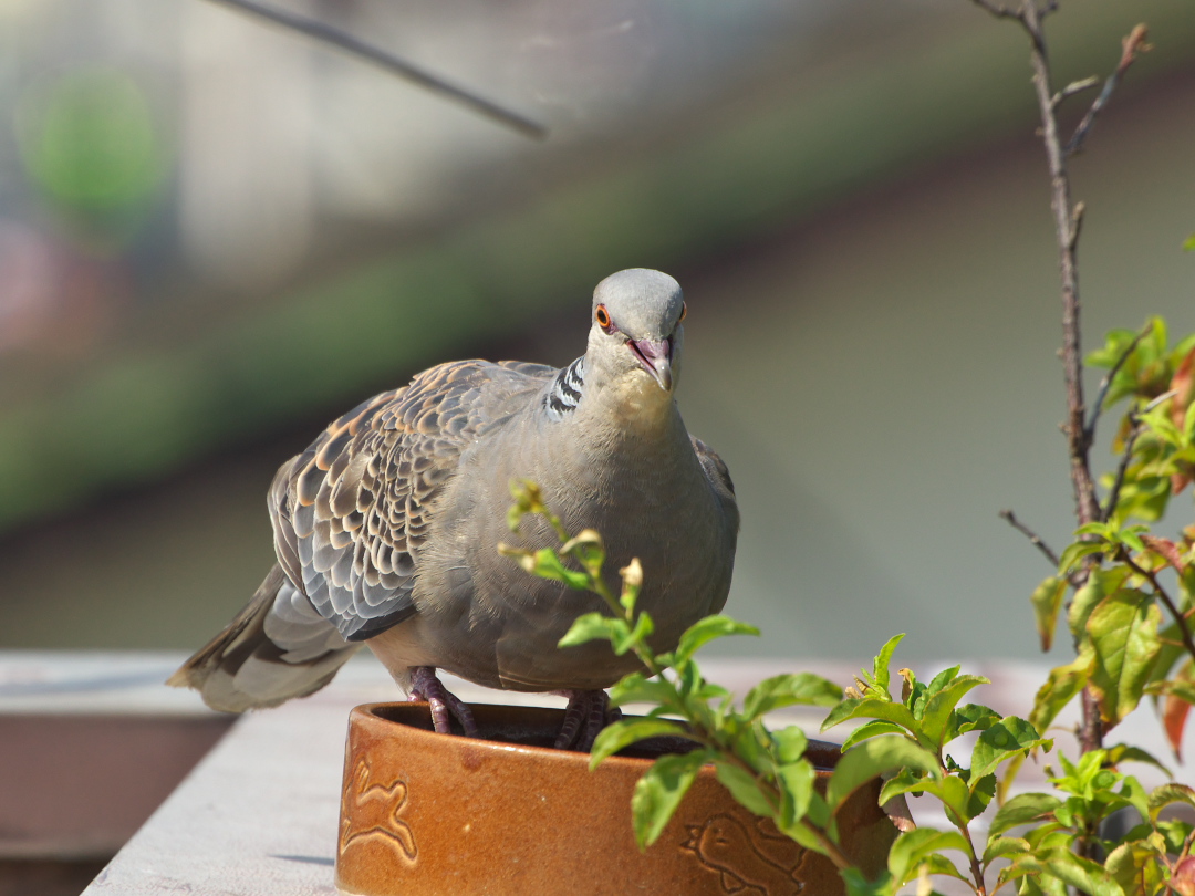 トリたちは暑い時、口を開けて体の熱を放出するみたいなんだけど、この時のキジバトはさらに冷却効果をアップするためか、喉をワラワラと振動させておりました。