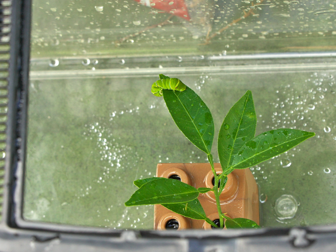 TWK屋上のユズの木には、毎日のようにアゲハチョウが産卵にやってくるのですが―――