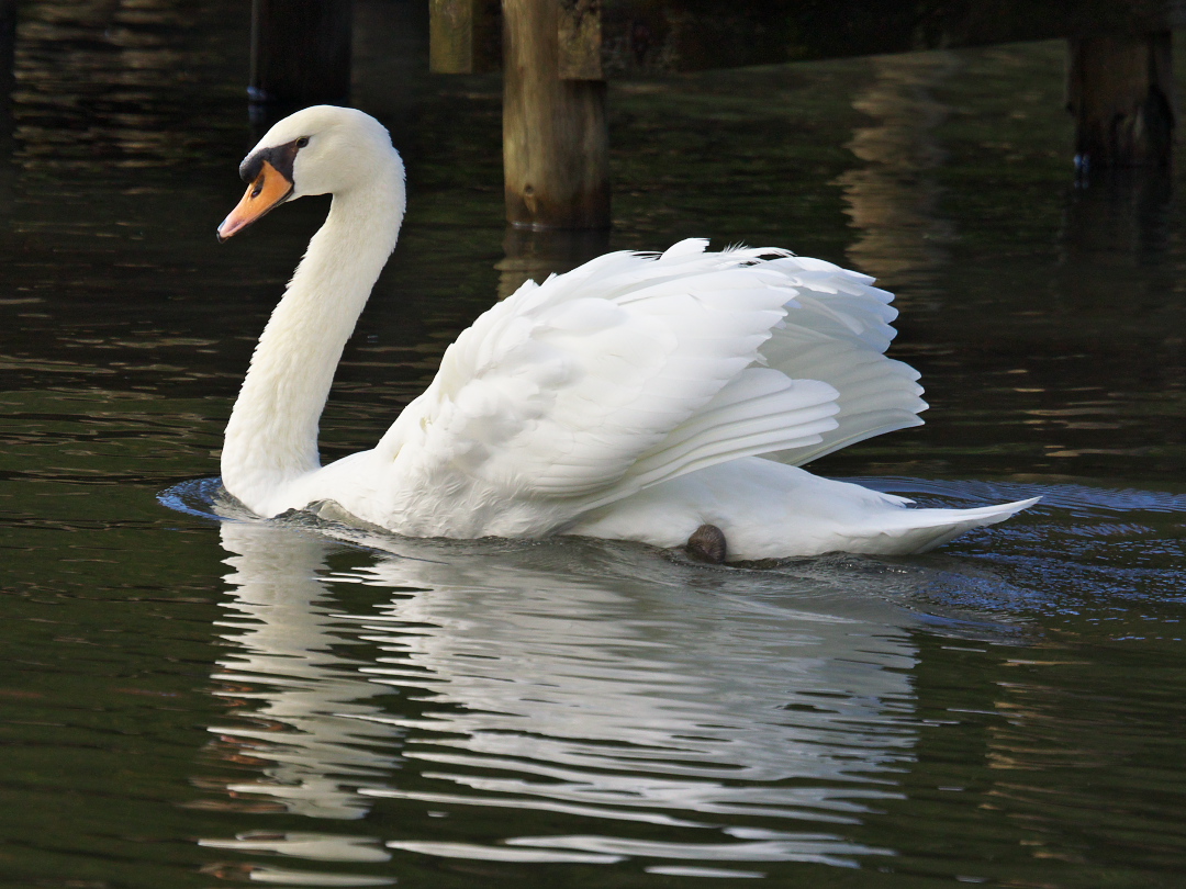 ↑これこれ!!この、ちょっと羽をふくらませて水面を泳ぐこの姿は、オオハクチョウやコハクチョウにはない優雅さがありますよね。