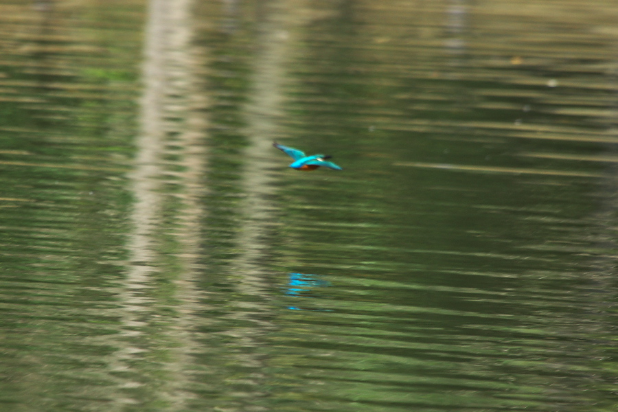 このゴイサギを撮っていると、水面すれすれを高速で飛ぶ物体が目に入ったので反射的にレンズを向けてシャッターを押すと―――