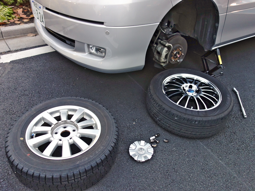季節はもう完全に冬で、いつ雪が降ったり路面が凍結したりしてもおかしくないので、スタッドレスに交換した。