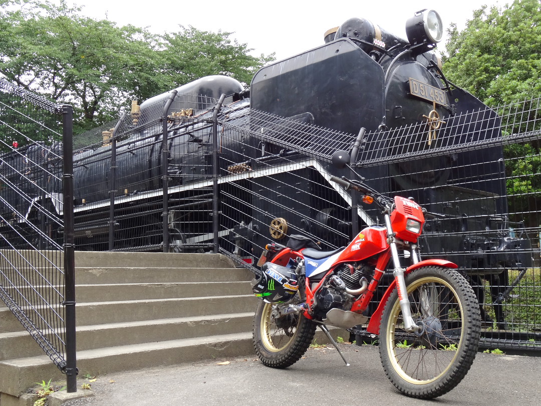 今回私がTLR200で探訪してきたのは、以前から一度“巡礼”しなくては‥‥‥と思い続けていた、千葉県東葛地区の松戸・柏・流山各市の公園に置かれている「D51」3体(蒸気機関車なので「3台」と言うべきなのだろうけど、ご本尊と同じように「3体」と呼ぶのがふさわしいと思う)を一気に巡るツーリング、名付けて『東葛D51巡りツーリング』だ。