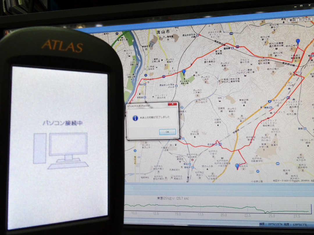 ATLASTOUR Plannerで作成したルートを、PCに接続したASG-CM12に保存し‥‥‥