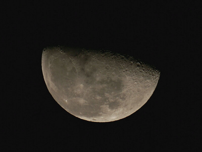 空気は澄み切っていても、専門用語で「シンチレーションが大きい」って言うんだったと記憶してますが「大気のゆらぎ」でメラメラしたような感じに見えてました(上の写真でも、月の輪郭が歪んでるのが分かると思います)。