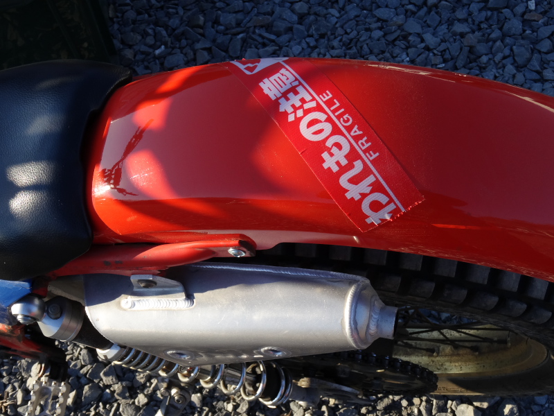 そこから、普段街乗りに使っているTLR200の保安部品を外し、スプロケットを交換したり「トライアルコンペ仕様」に変更したのだけど、ヘッドライトやテールライトを取り外すのがとにかく簡単で、ここでまた改めてこのTLR200というバイクのポテンシャルの高さを再認識させられたのでありました。