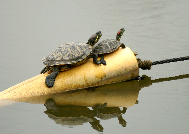 今日の写真は「世界最高齢のゾウガメが176歳で大往生」というニュースにちなんで、先日みさと公園で撮影したミシシッピアカミミガメ(たぶん親子?)です。