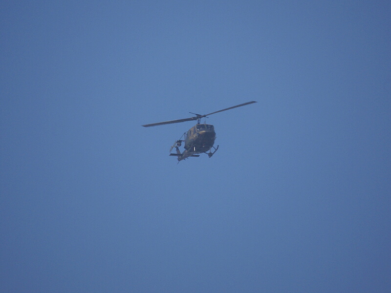 で、ひさしぶりにTWK屋上で運動していると、「バタバタバタバタ‥‥‥」というUH-1の音が。