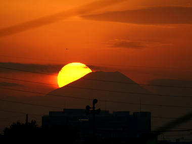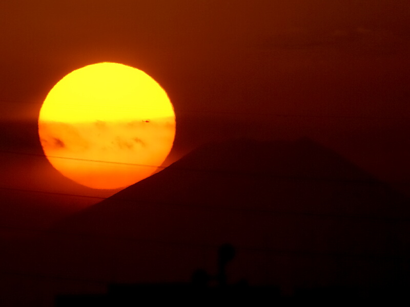 実は、きのうも「ダイヤモンド富士」を撮ったのですが、きょうよりも空気が汚れていてせっかく富士山の頂上に夕日が沈む日だったのに、ほぼ「ボツ写真」
