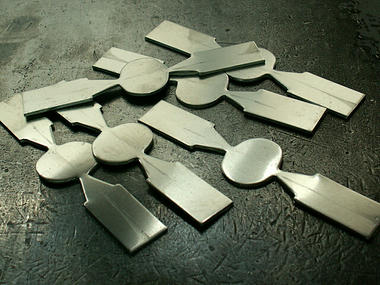 まず、材料となる「5052アルミ板(t1.5mm)」を、プレスを使用して自分で作った「打抜型」で打ち抜きます