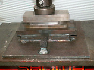 次に、これまた自家製の型を使ってプレス加工で成型します