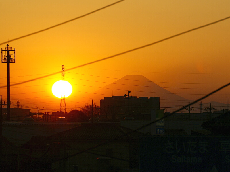↑きょうの夕日と富士山。