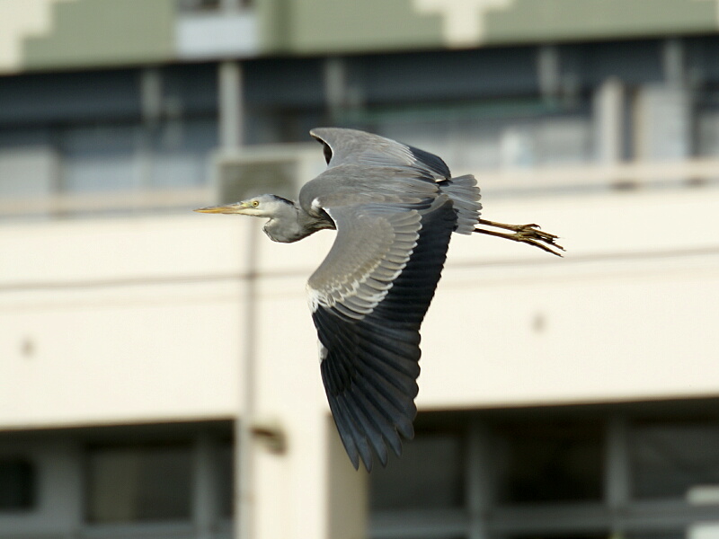 まずは三郷工業技術高校のそばで飛行中のアオサギを撮影