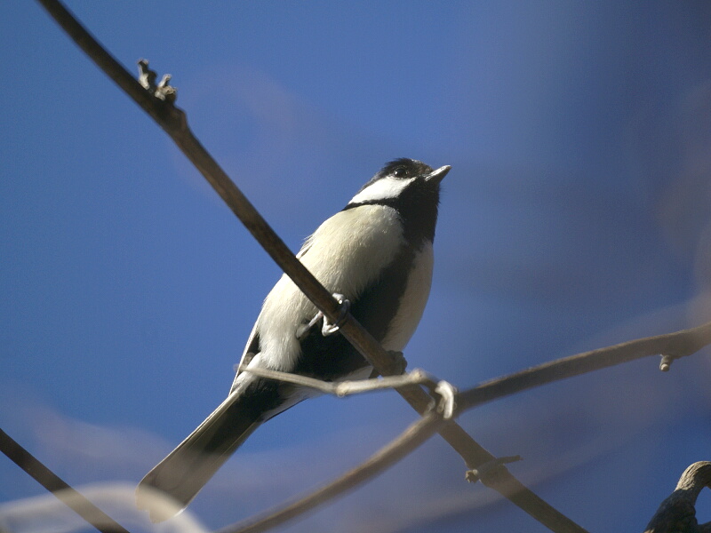 今回はただ歩き回るのではなく、良さそうなポイントを決めてしばらくそこで「自然に溶け込む」作戦を取ることにしたのだが、さっそくシジュウカラの群れがやって来て、そのうちの一羽が私のすぐ上の枝に止まり、しばらくの間そこで囀っていた