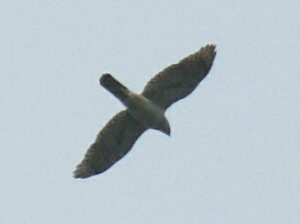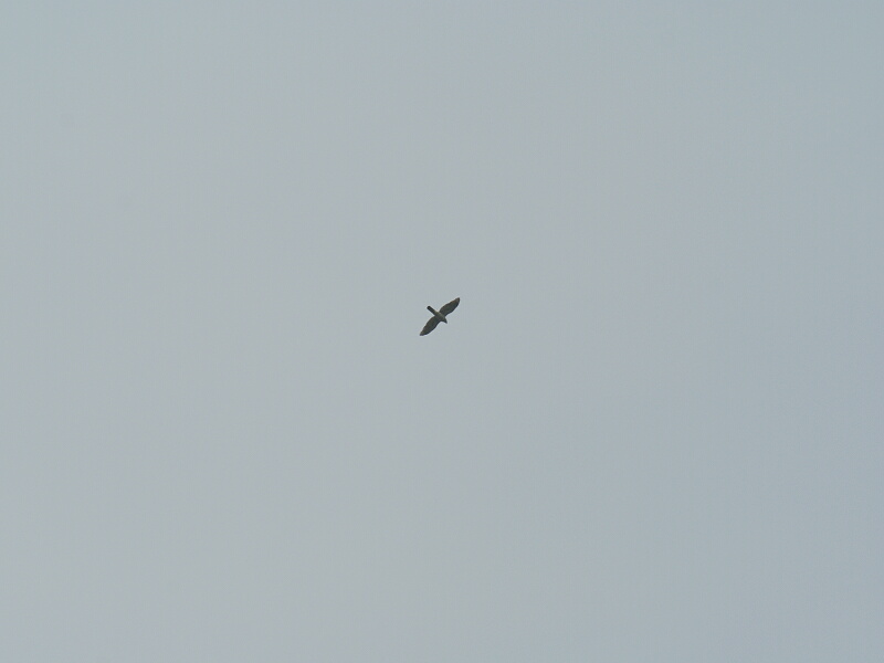 う~ん、画質が悪くてはっきり判らないが「ハイタカ」のように見えなくもない。どなたか猛禽類に詳しい人がこれを見てたらコメントください、って感じだ。
