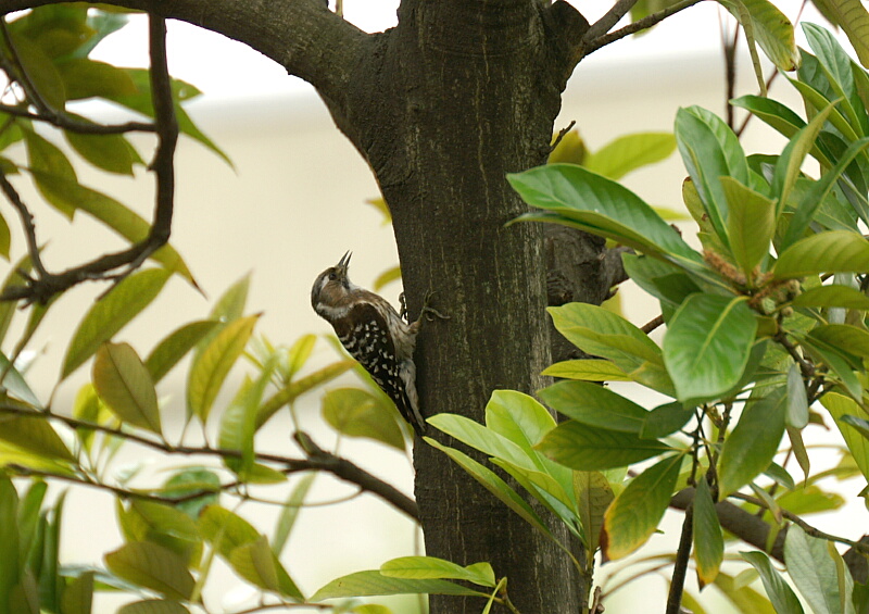 なんかこのコゲラ、毛並みが良くない。もしかしたらまだ子供なのかな!?