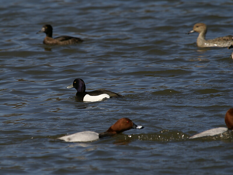 そして、池の中にはいつも見かけるカモ類に交じって「キンクロハジロ」や「ホシハジロ」の姿も見える↓。