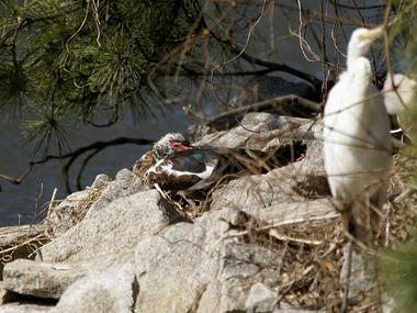 初めて訪れた「そうか公園(TWKのすぐ近く)」でたくさんの鳥たちに出会ってゴキゲンな私だったが、池の中にある小さな島に、見た事もないようなヘンな鳥を発見して「なんじゃこりゃあ