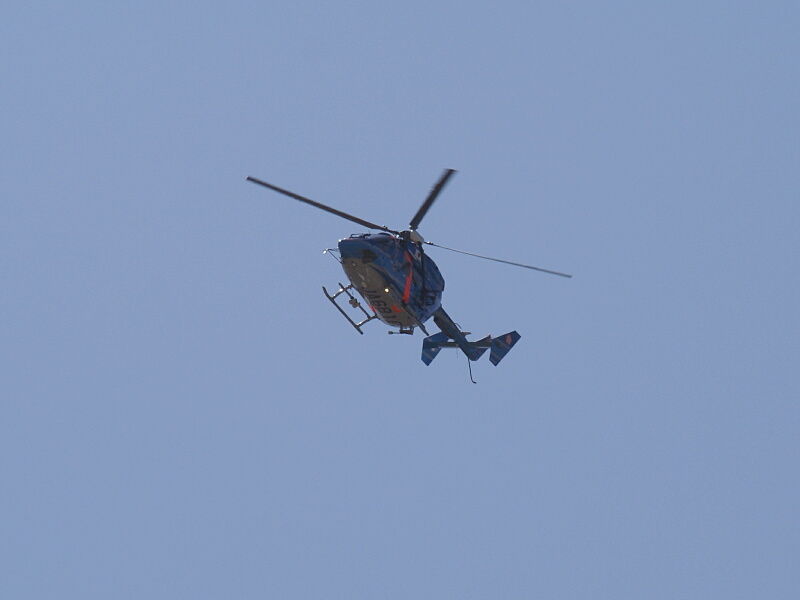 先日、いつものようにTWK屋上にいると、遠くから「警察カラー」のKawasaki BK117がこちらに向かって飛んでくるのが見えた。
