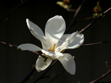 例年はだいたいこの日に満開になっている「ハクモクレン」の花ですが、今年はもうほとんど散ってしまい、かろうじてこの一輪だけきれいに咲いた状態で残っていました。