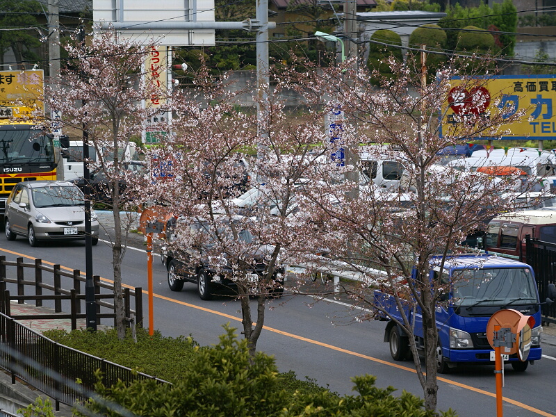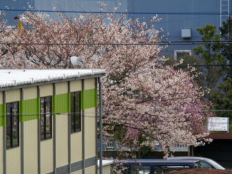 TWK屋上から見える「レンタルのニッケン」裏の桜の本日の状況↓