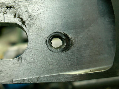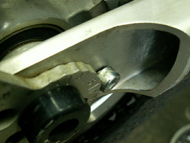 こんなヤワな素材にM6ボルト1本ねじ込んで、それでチェーンの駆動力を受け止めるなんてムリなんだよ!!