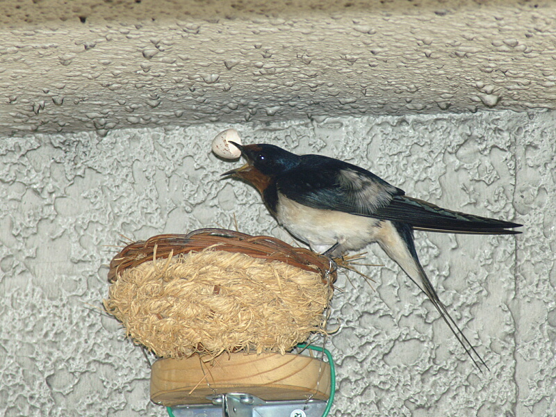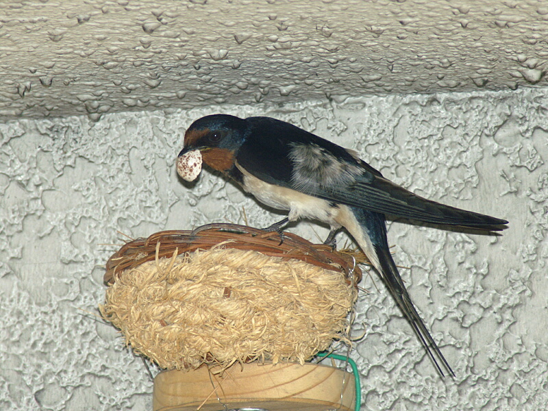 いつも巣の下に殻が落ちているのを見つけて、孵化したことを知るっていうパターンだったのですが、親ツバメが殻を運び出している瞬間を目撃したのは今回が初めて。