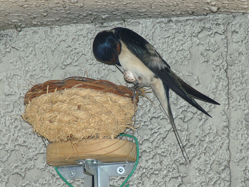 その後、店の中で事務的な作業をしながら、正面に見える新しいツバメの巣(ただいま5個抱卵中)の方に目をやると―――