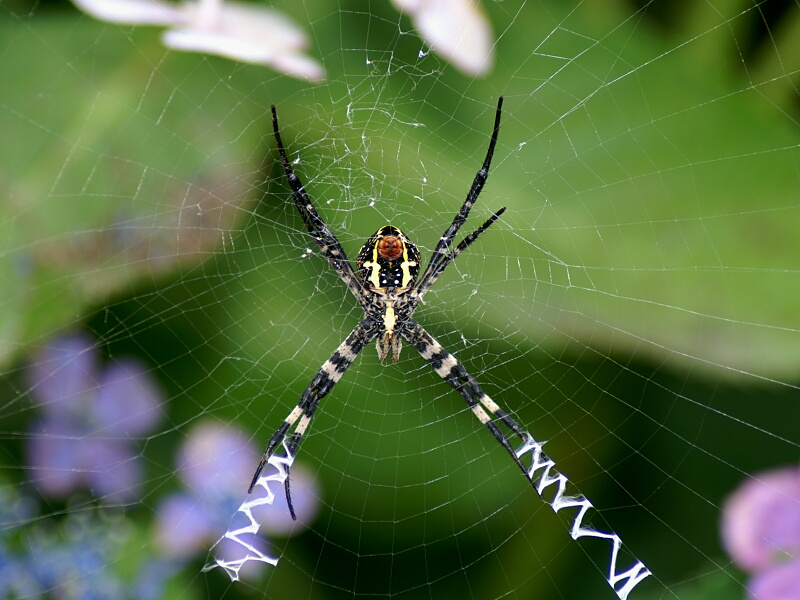 人間の目で見るとバレバレでぜんぜんカモフラージュになってないけど、昆虫の目はこんな子供だましのカモフでも効果満点で、みんな巣に捕まってしまうのかも知れない。