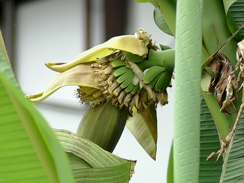 ついこのあいだ枯れたバナナのことを記事にしたばかりなのに―――あの時気がつかなかったけど、大きな葉っぱの陰で新しい実は確実に育っていたんだね‥‥‥。