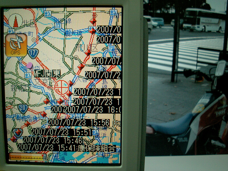 ↑きょうもポータブルナビを付けて行ったので、帰り道の移動履歴(5分間隔)を表示してみました。