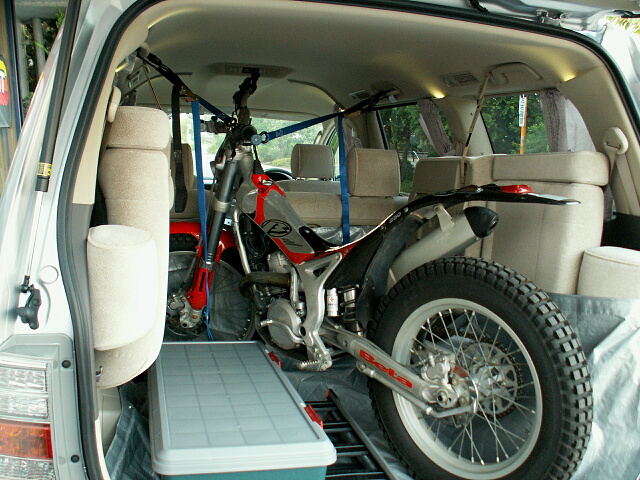 こんな感じで、トライアルバイク1台積みなら3列目シートををたたむだけで余裕でした