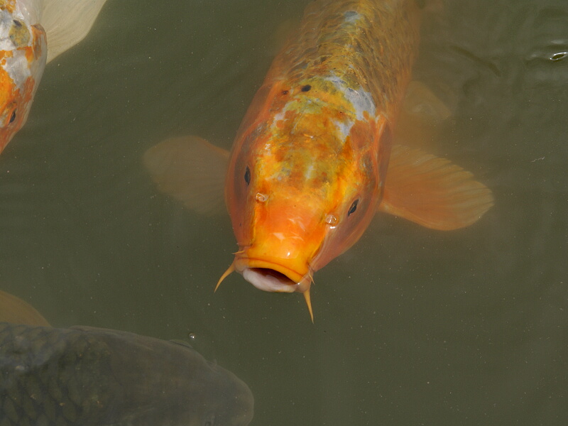 「カワセミいないかなぁ―――!?」と、池のふちに立っているとたくさんの「コイ」が寄って来た。