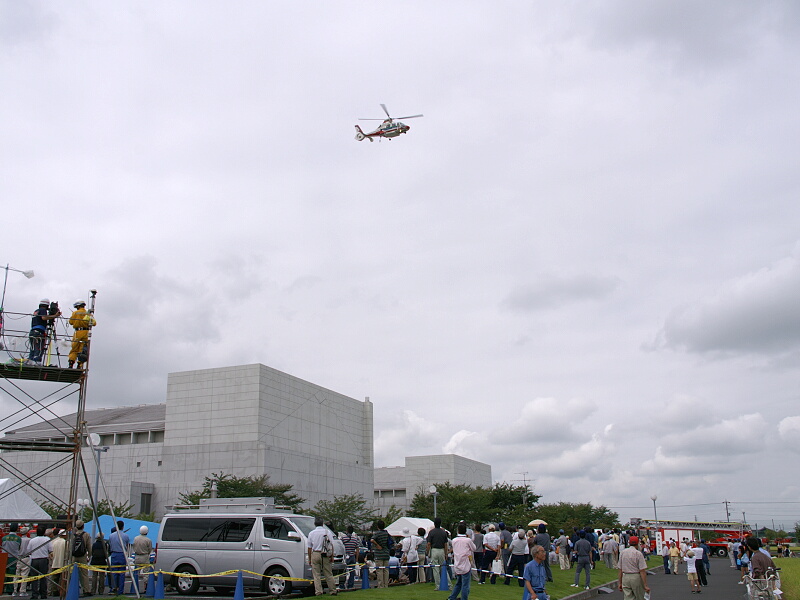 ↑会場と道路一本隔てた「運動公園」が「臨時へリポート」という、実にオイシイ設定で、ヘリの離着陸シーンを間近で見ることができました。