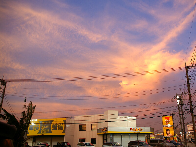 夕方になってやっと晴れ間が見えてきたのですが、TWK付近では「夕焼け」で空が不気味な色に染まっていました↓。