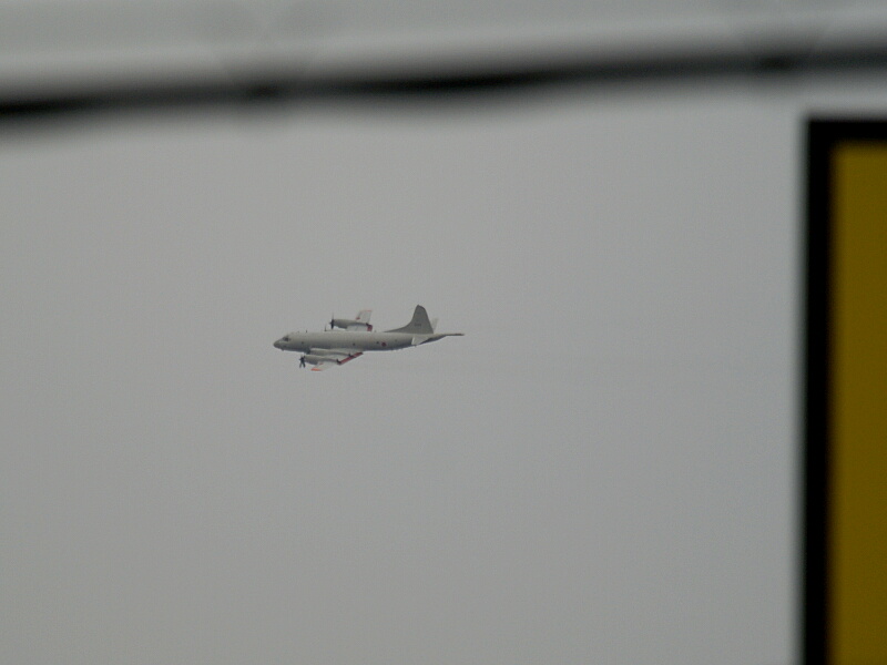 きょうはひさしぶりに下総基地のP-3Cが「流山橋ホールド」状態でしばらくの間“低空旋回”を続けていました。