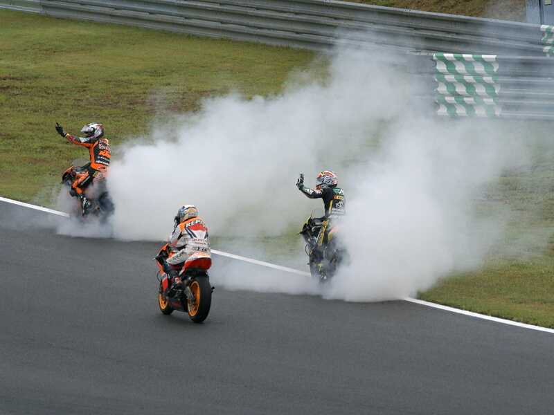 だが、転倒を免れ一つ順位を落としただけでコースに復帰できた彼は、その後2位を走っていたライバル・青山博一選手(KTM)が転倒したことにより最終的に4位でゴール。表彰台こそ逃したものの一時はトップに立ち2位以下との差を広げるすばらしい走りを見せ、高橋裕紀の復活を母国の観衆に強く印象付けたのだった。