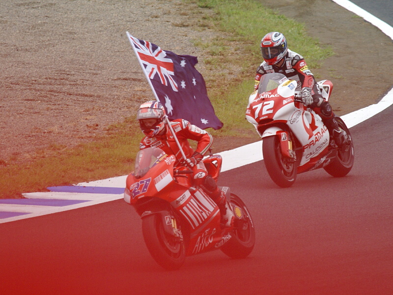 まずはMotoGPクラスの朝のウォームアップ走行時のこの写真から↓。