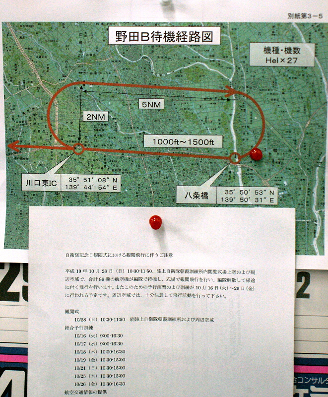 そして、その周辺空域に5ヵ所設定されている参加航空機の「待機経路」の一つがもろにTWK上空を通過する事になっているのである―――↓。
