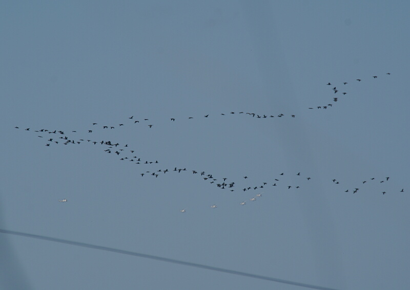 すごい数の群れですが、全体ではこれの2倍か3倍くらいの数のカワウが移動して行きました。総数で何百羽いたんだろう‥‥‥!?!?
