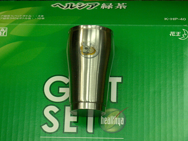 「花王ヘルシア緑茶」のオマケでもらったステンレスコップです