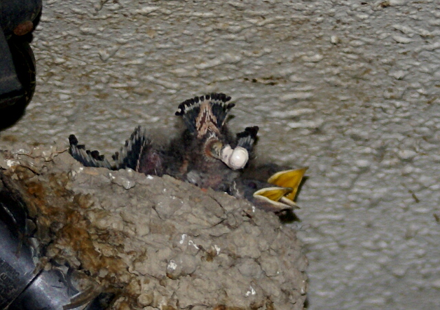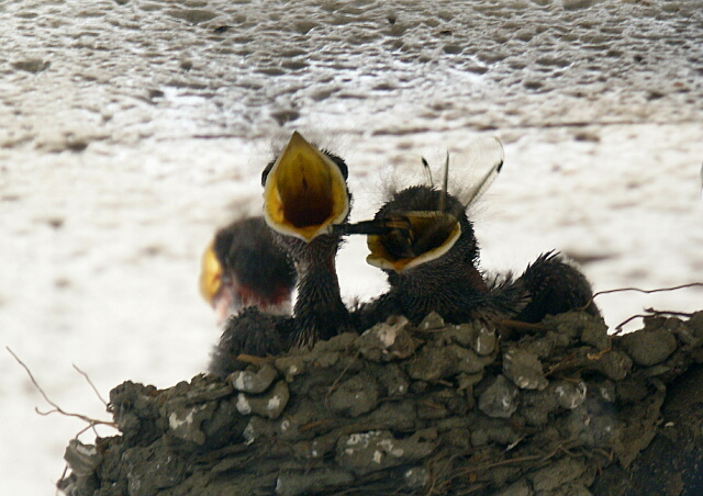 梅雨も明けたということで、きょうはトンボがたくさん飛んでいて、ヒナたちも「わ~い!やったねパパ、あしたはホームランだ!!」と大喜びしながら親が捕まえてくるトンボを食べまくっていました