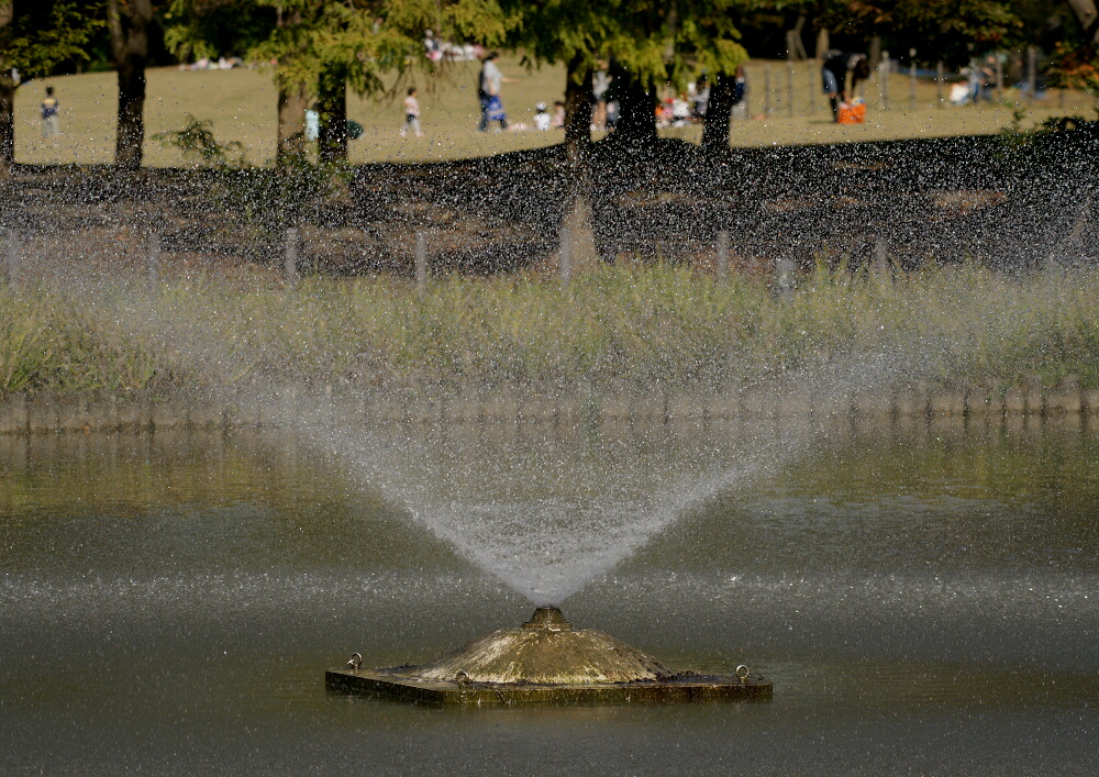 ↑まずは公園に入ってすぐの「ひょうたん池」にある噴水を高速シャッターで。