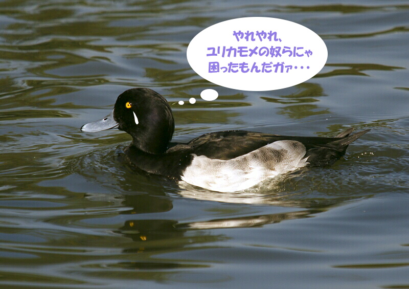 (↑このキンクロハジロくん、目が“困ったちゃん”になってたのでイタズラ書きしてみました