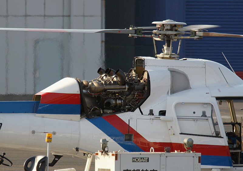 ご覧の通り、AS350をベースにしてエンジンを2基載せたため、いかにも「後から付けました」的なエンジンカバーが「せむし男」っぽい雰囲気をかもし出している。