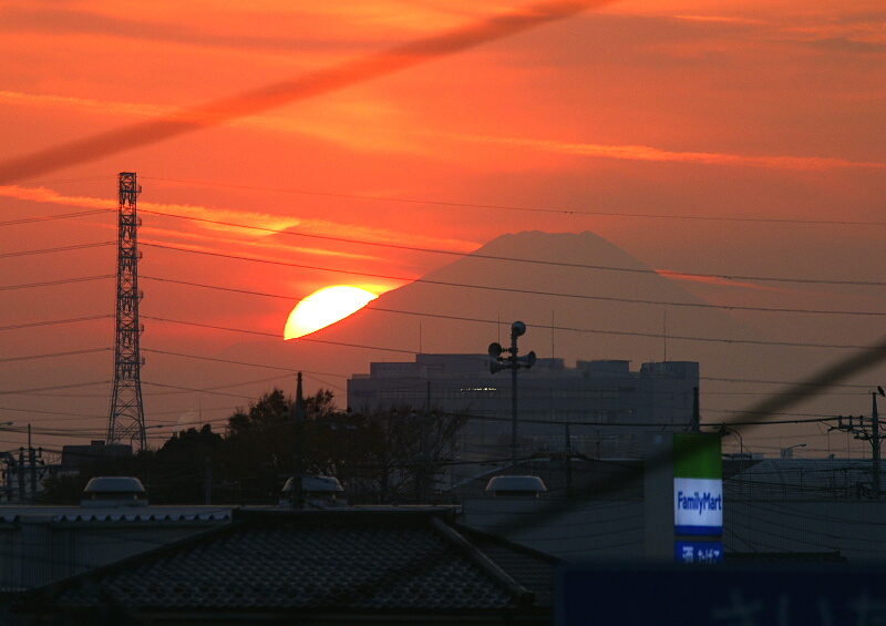 そして夕方は富士山の山麓に夕日が沈む光景が見られた。