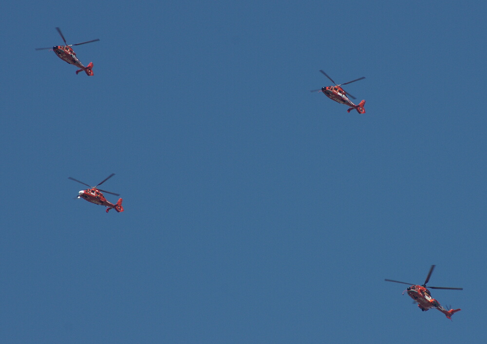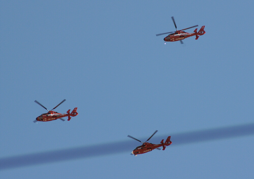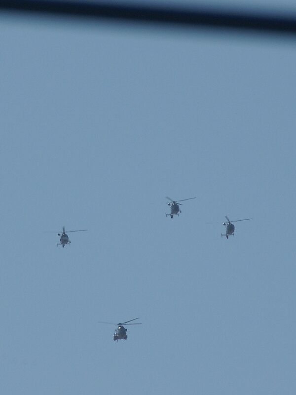 ―――というわけで、まずは今朝のTWK屋上での出来事。南の方角からヘリの編隊がこちらに向かってやってくるのを発見!!