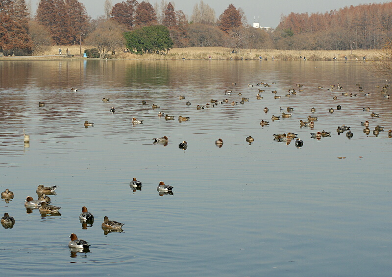 ↑これはその場所へ行く途中の風景。こんなカモ類がたくさんいる広い場所の中にいるとしたら見つけるのは大変だが、そのポイントは小さな池なので、もしまだオシドリがいるとしたら見つけるのは容易なはずだ。