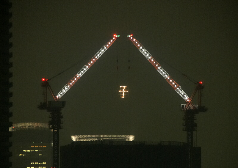 電飾付きのクレーンでぶら下げられた「子」の一文字‥‥‥謎である(?_?)。