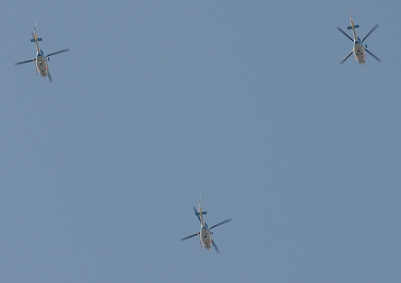 新年のKC庁観閲式(?)の予行訓練だと思うのですが、昨年の自衛隊観閲式でド派手に飛びまくって苦情が殺到した影響か、例年よりずいぶん控えめな飛行訓練のようです。