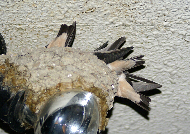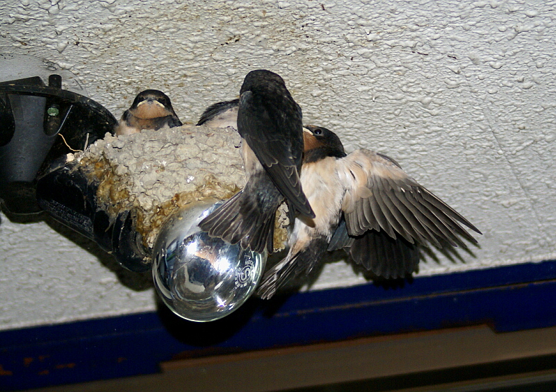 そうそう、明日こそはツバメたちもいよいよ巣立ちそう。きょうのお昼頃、一羽がいったん巣から飛び立ったのですが、まだうまく飛べないようで巣の下にしばらくいたと思ったら、また巣の中に戻ってしまいました。